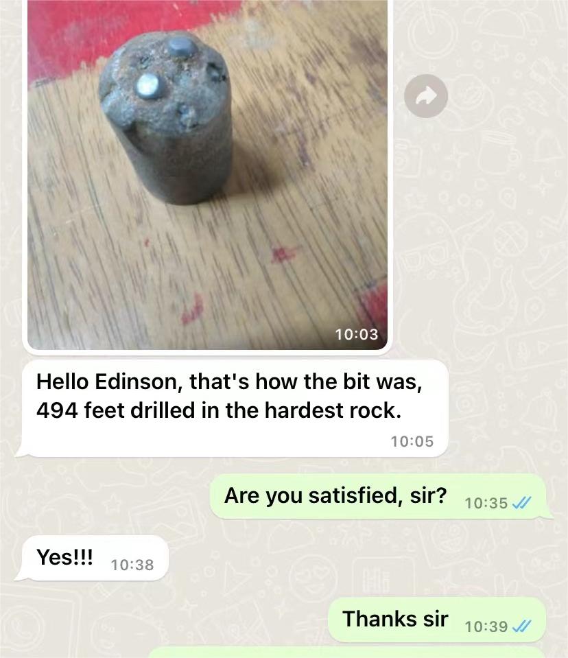 "We have sent samples to Chile, and got good feeback: 494 feet!" Edison said, "you know that normally the drilling deepth is around 350 feet, Such outstanding achievements cannot be separated from the rigor and hard work of our scientific research team, let alone the trust of customers.”